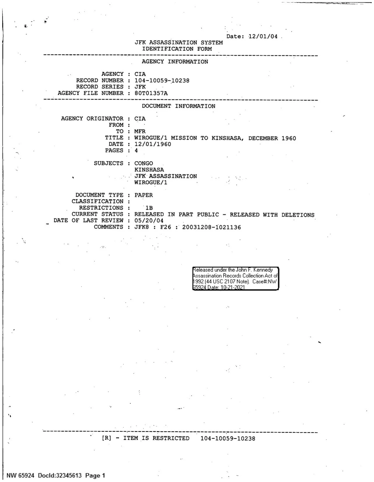 And then, late last year, the US National Archives released a trove of documents loosely connected with the Kennedy assassination. WIROGUE is one example of the kind of deniable CIA agent that some people believe might have been connected with Kennedy’s death. I have no opinion on that matter, but it does mean that a fresh document about him was released. And how I wish I had had it before I started writing.